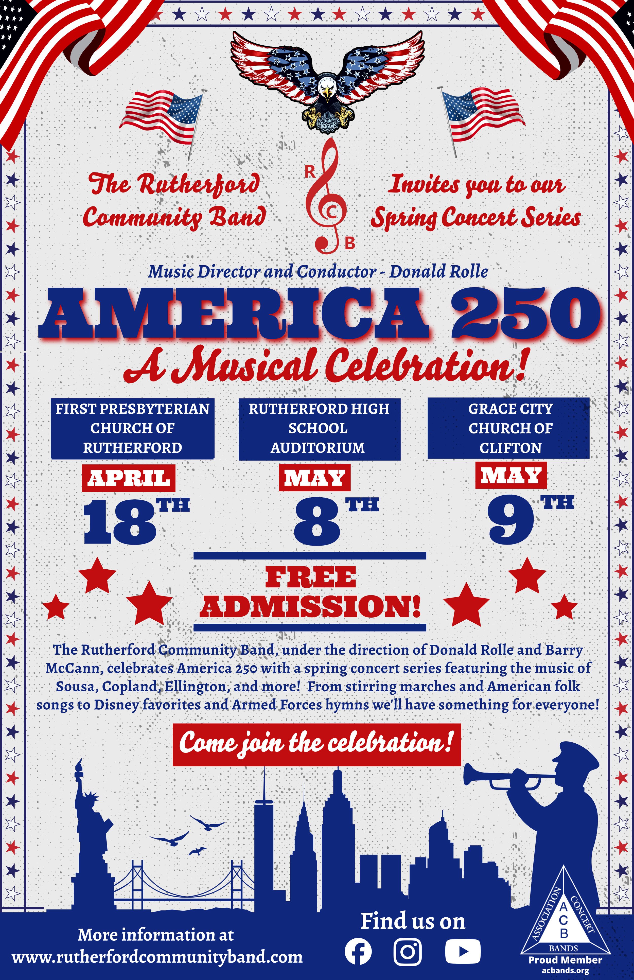 No tickets, no admission — just great music for the whole community. Come celebrate America's 250th with us!